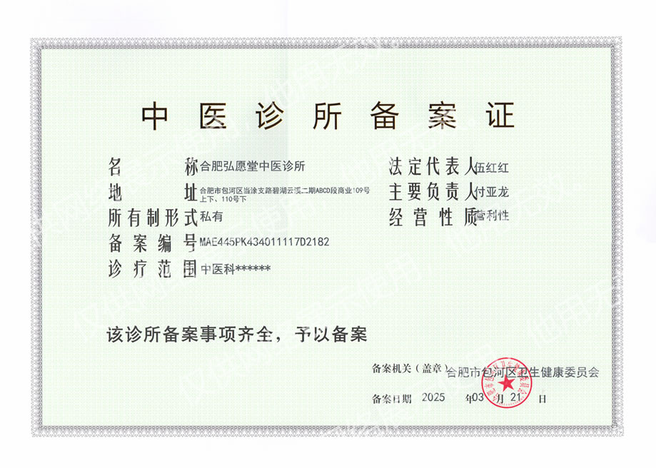 合肥弘愿堂中医诊所获 包河区卫健委中医备案